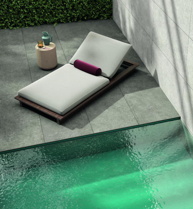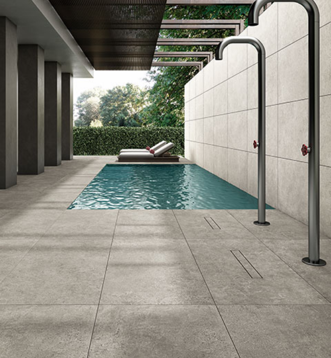 20 mm biezās keramikas porcelāna flīzes ir piemērotas gan āra, gan iekštelpu baseiniem un terasēm.