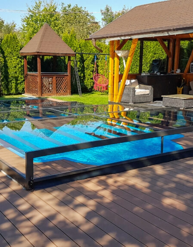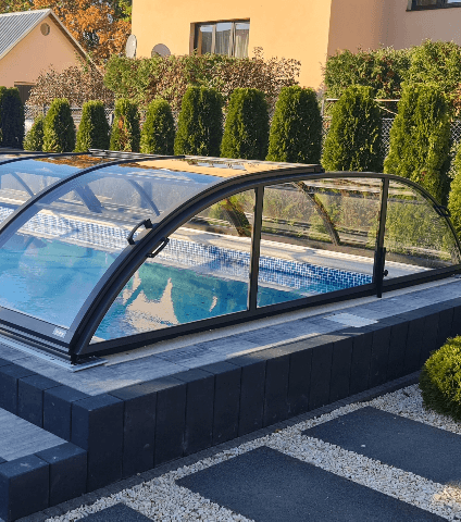 Visbiežāk mūsu klienti izvēlas Azure vai Champion "econom" sērijas baseina jumtus, kas ir izmaksu ziņā lētāki salīdzinājumā ar Premium klases konstrukciju jumtiem, vienlaikus piedāvājot visas Premium jumtu funkcionālās priekšrocības.