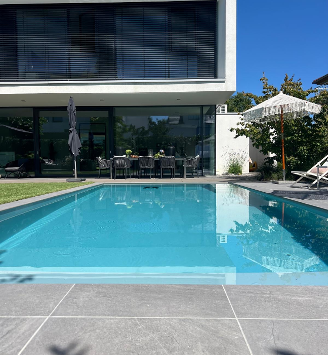 - Sliede ierīkota no vienas baseina puses.