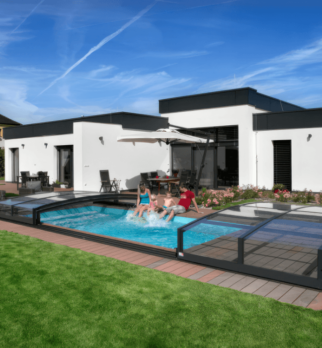 VIVA™ baseina pārsegs piedāvā elegantu un funkcionālu risinājumu tiem, kas meklē zema profila baseina jumtu, nepiekāpjoties kvalitātei un komfortam.