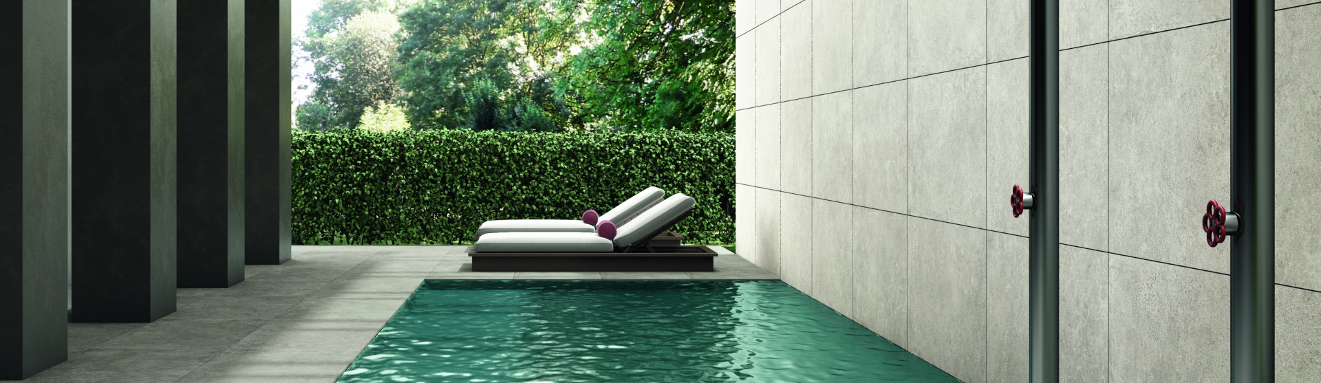 Pārplūdes kanāli tiek nosegti ar ekskluzīvām flīzēm, radot sajūtu, it kā ūdens neredzami paplūst zem tām.