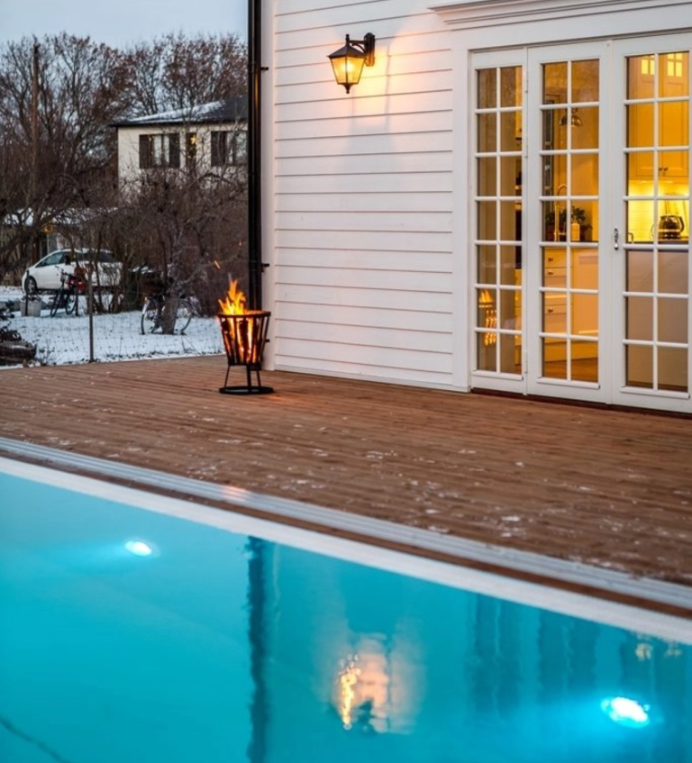 Ekskluzīvie baseini ir aprīkoti ar slēptajiem pārplūdes kanāliem, kuros ūdens tiek savākts, kad tas plūst pāri baseina malām.
