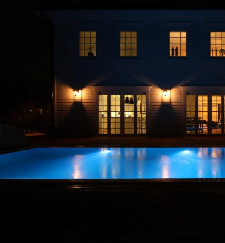 Kontrolējiet sava baseina pārklāju, apgaismojumu, ūdens temperatūru, pretstraumi un daudz ko citu, izmantojot Loxone Touch Surface vai Loxone lietotni.